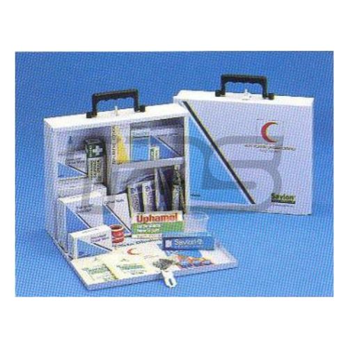 An economy-sized and economy-cost model, this first aid kit is ideal for large households and offices with 10 to 20 employees. Besides being lockable to prevent pilferage, it can be wall-mounted and has a convenient drop-down lid.