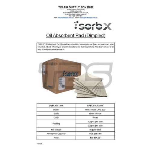 SORB X OIL ABSORBENT PAD 40cm X 50cm (DIMPLED)